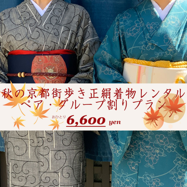 秋の京都街歩き正絹着物レンタル ペア・グループ割りプラン 6,600円(お一人様)